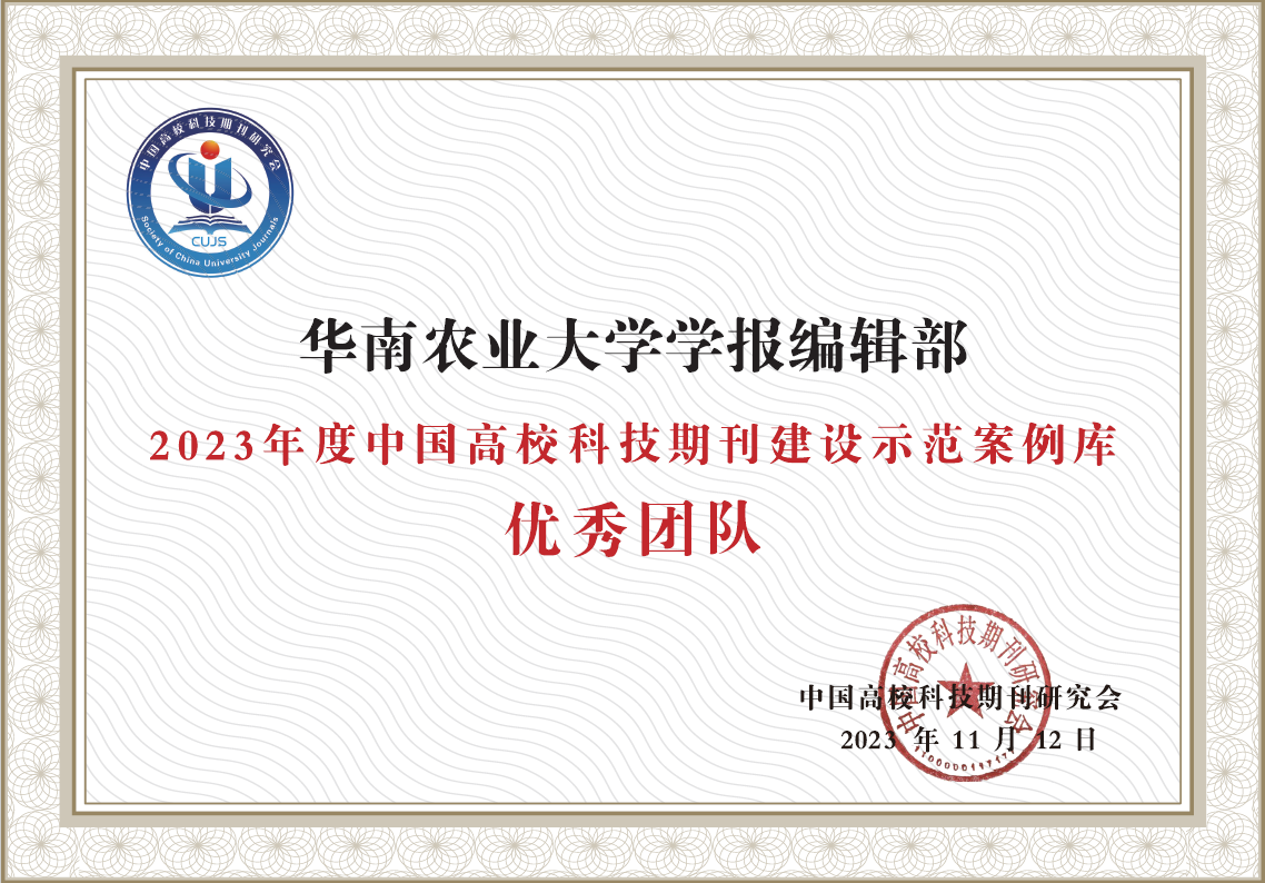 2023年11月14-17日,中国高校科技期刊研究会第27次年会在海南省海口市举行,本次年会的主题是“新时代高校科技期刊高质量发展”。大会公布了2023年度“中国高校科技期刊建设示范案例库·编辑团队及编辑个人案例”的遴选结果。《华南农业大学学报》编辑部获得2023年度中国高校科技期刊多项荣誉,编辑部入选“2023年度中国高校科技期刊建设示范案例库·团队案例”,常务副主编周志红编审荣获“2023年度中国高校科技期刊建设示范案例库·主编个人案例”,编辑庄延荣获“2023年度中国高校科技期刊建设示范案例库·编辑个人案例”。