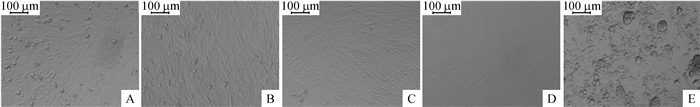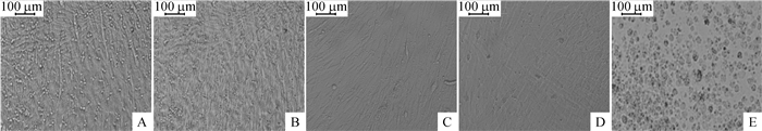 图 5 rChIFN-α-ChIL-18蛋白对NDV的抑制作用 Figure 5 rChIFN-α-ChIL-18 antiviral activities against NDV A:未感染NDV的正常CEF细胞;B:经rChIFN-α-ChIL-18处理后感染NDV的CEF细胞;C:经rChIFN-α处理后感染NDV的CEF细胞;D:经rChIL-18处理后感染NDV的CEF细胞;E:病毒对照组CEF细胞. |