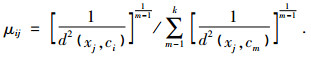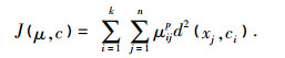 将连续属性离散化是挖掘数量型属性关联规则的关键,这里采用的FCM算法是Bezdek提出来的对数据进行模糊聚类的方法,基本思想是找到一个隶属矩阵(μij)k×n以及k个聚类中心c=(c1, c2,…,ck), 使得给定的目标函数最小[20].本文采用FCM算法将数量型属性(如逐日高温值)划分成若干个模糊集,模糊集能在集合元素和非集合元素之间提供平滑的变迁,较好地实现连续量和离散量之间的转换,同时,在处理高偏度的数据时FCM算法能有效地体现出数据的实际分布情况.FCM算法的核心是计算目标函数[21]: