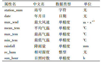 表 1 广东省气象遥测站多要素逐日观测数据结构 Table 1 Data structures of the meteorological observation in Guangdong Province |