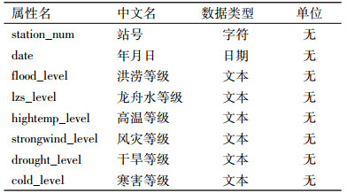 表 2 广东省农业气象灾害发布数据结构 Table 2 Data structures of public agricultural meteorological disasters in Guangdong Province |