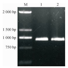 图 2 菌株SCAU3的ITS-PCR扩增产物电泳图 Figure 2 Electrophoresis of PCR products of ITS from SCAU3 M:DNA maker DL2000;1、2: SCAU3. |