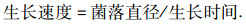 1.4 试验方法 1.4.1 测定方法取生长期和长势一致的PDA平板上的菌落,用直径0.9 cm的打孔器取长在同一直径内的菌块,接入相应的培养基中央,恒温培养,菌丝萌发后,采用十字交叉法测量菌落直径,每隔3 d测量1次,记录菌丝长势,计算生长速度:
