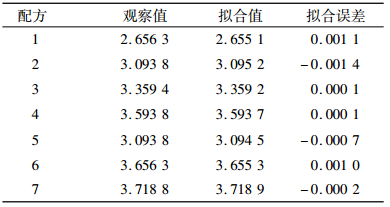 表 7 样本配方的观察值、拟合值和拟合误差 Table 7 The observed value, fitted value and fitted error of the samples |