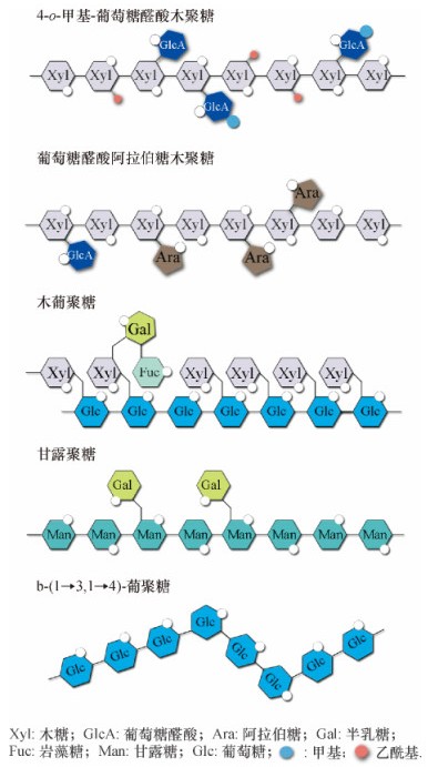 图 1 半纤维素结构示意图 Figure 1 Schematic illustrations of hemicelluloses |