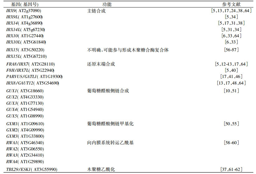 表 1 葡萄糖醛酸木聚糖合成相关基因 Table 1 Genes involved in the glucuronoxylan biosynthesis |