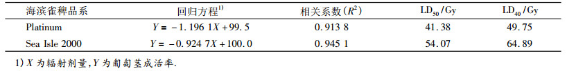 表 2 辐射剂量与海滨雀稗成活率的回归分析 Table 2 Regression analysis of irradiation doses and survival rates of seashore paspalum |