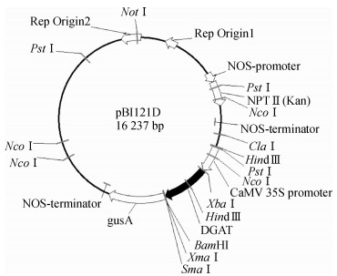 图 1 pBI121D植物表达载体图谱 Figure 1 The map of plant expression vector pBI121D |