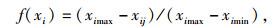 若主成分因子负荷量为正,采用升型分布函数,隶属函数公式为: