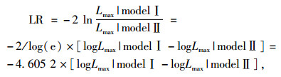 其中, LR为似然比值,服从χ2检验;Lmax是不同模型下最大似然函数值。如果检验结果差异不显著,则接受原假设,以model Ⅰ作为候选模型。