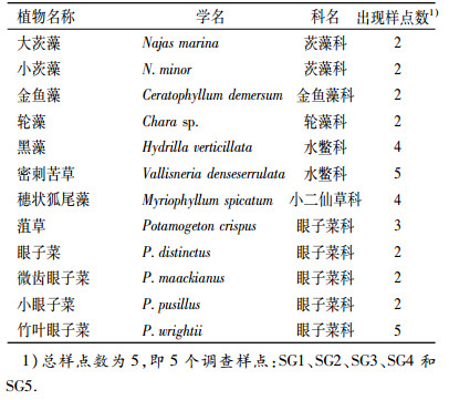 表 1 调查样点的沉水植物种类及分布 Table 1 The species and distribution of submerged plants at survey sites |