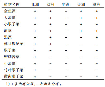 在所记录的6个沉水植物科中,除水鳖科为泛热带分布外,其余的科均为世界分布型;在所记录的6个沉水植物属中,除黑藻属为旧世界分布和苦草属为泛热带分布外,其余的金鱼藻属和大茨藻属2属均为世界分布。