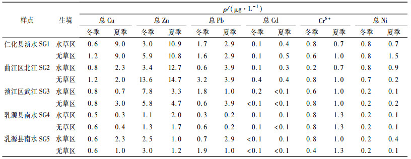所有样本的重金属含量均达到国家Ⅰ级水的标准。在冬季,多数重金属元素含量高于夏季,但也有例外(表 8)。