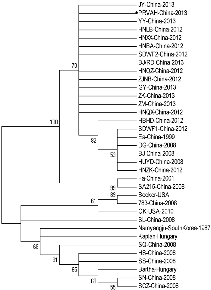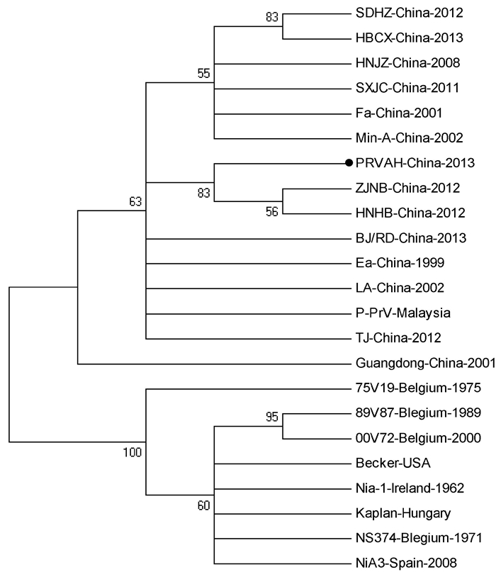 图 2 PRV gE基因的遗传进化分析 Figure 2 Phylogenetic analysis based on PRV gE |