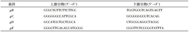 1.2.3 引物设计参照GenBank发布的PRV序列(GI:32187339)设计4对引物分别扩增PRV gB、gC、gD、gE基因序列,引物由生工生物工程股份有限公司合成。