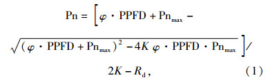 其中:Rd为暗呼吸速率; Pn、PPFD、Pnmax和Rd的单位均为μmol·m-2·s-1。
