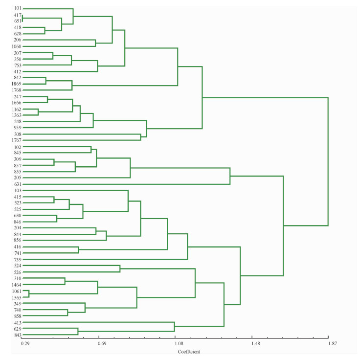 图 1 53个种源聚类分析结果 Figure 1 Cluster analysis of 53 provenances |