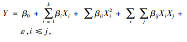 式中,β0是截距;βi,βii,βij是回归系数;Xi和Xj是水平编码变量;ε为误差。