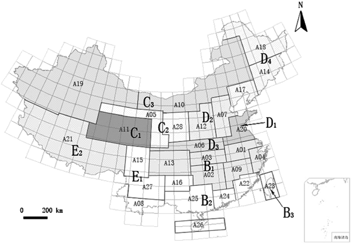 根据简约性分析结果和弄蝶物种的分布特点,将中国版图划分成10个主要区(图 3):中部地区(B1);南部地区(B2);台湾地区(B3);中北部地区(C2); 西部地区(C3)包括内蒙古和新疆;北部地区(D2);秦巴山区(D3);东北地区(D4);西南地区(E1);西藏地区(E2)。