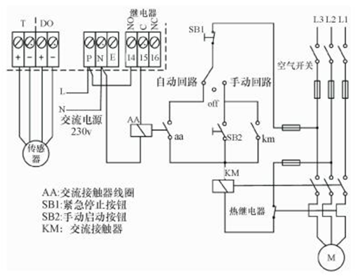 图 1 全自动增氧机接线原理图 Figure 1 Wiring diagram of the automatic aerator |