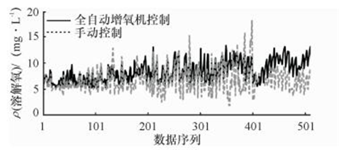 图 10 全自动增氧机溶解氧含量连续变化 Figure 10 Continual change in the dissolved oxygen content controlled by the automatic aerator |