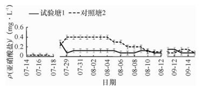 图 7 全自动增氧机对鱼塘亚硝酸盐含量的影响 Figure 7 Effect of the automatic aerator on nitrite content in fishpond |