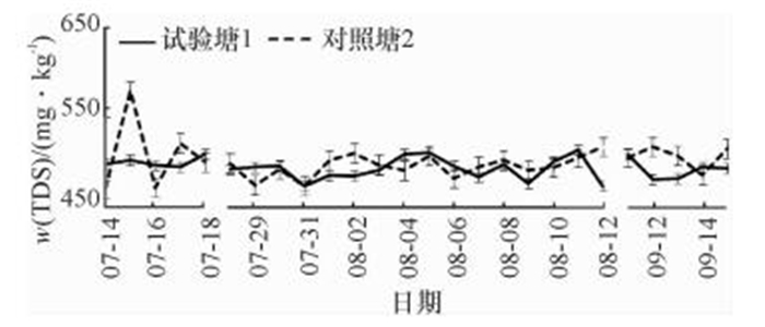 图 8 全自动增氧机对鱼塘TDS的影响 Figure 8 Effect of the automatic aerator on total dissolved solid value in fishpond |