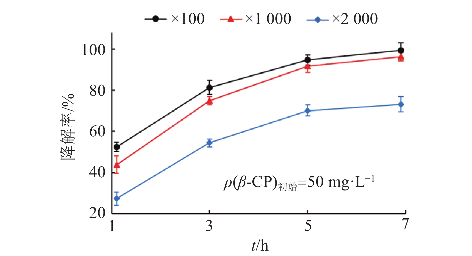 图 3 不同稀释倍数的BSF01菌剂对β-CP的降解效果 Figure 3 The degradation of β-CP by strain BSF01 agent with different dilution |