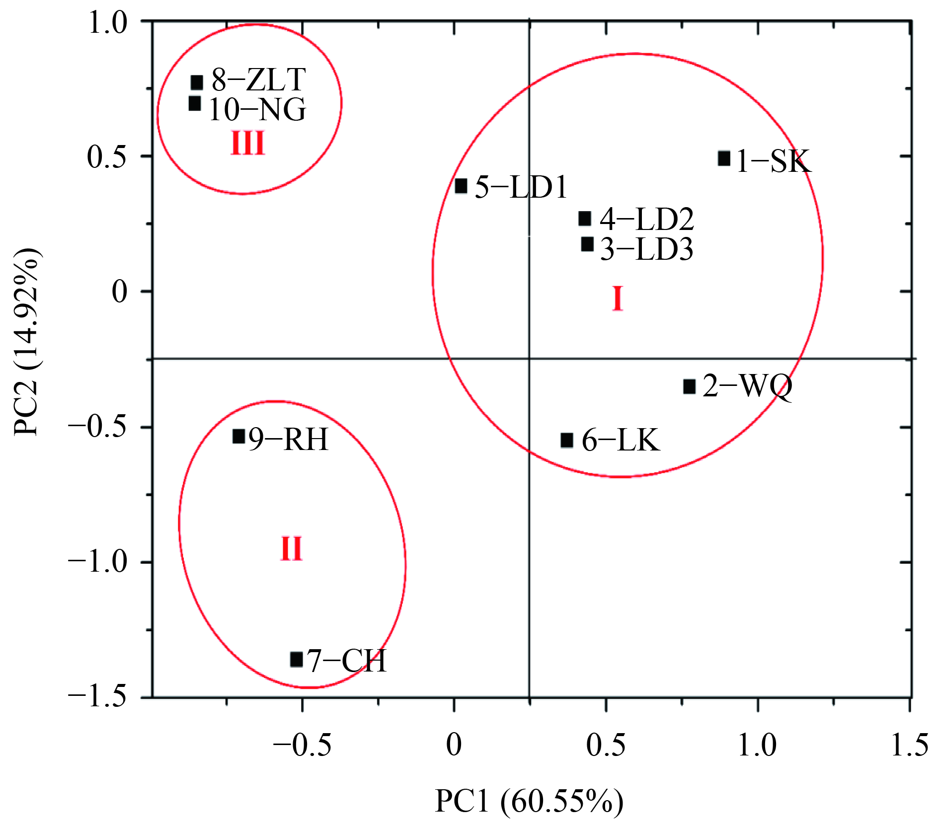 图 3 nirS基因序列的主坐标分析 Figure 3 Principal coordinate analyses of nirS gene sequences |