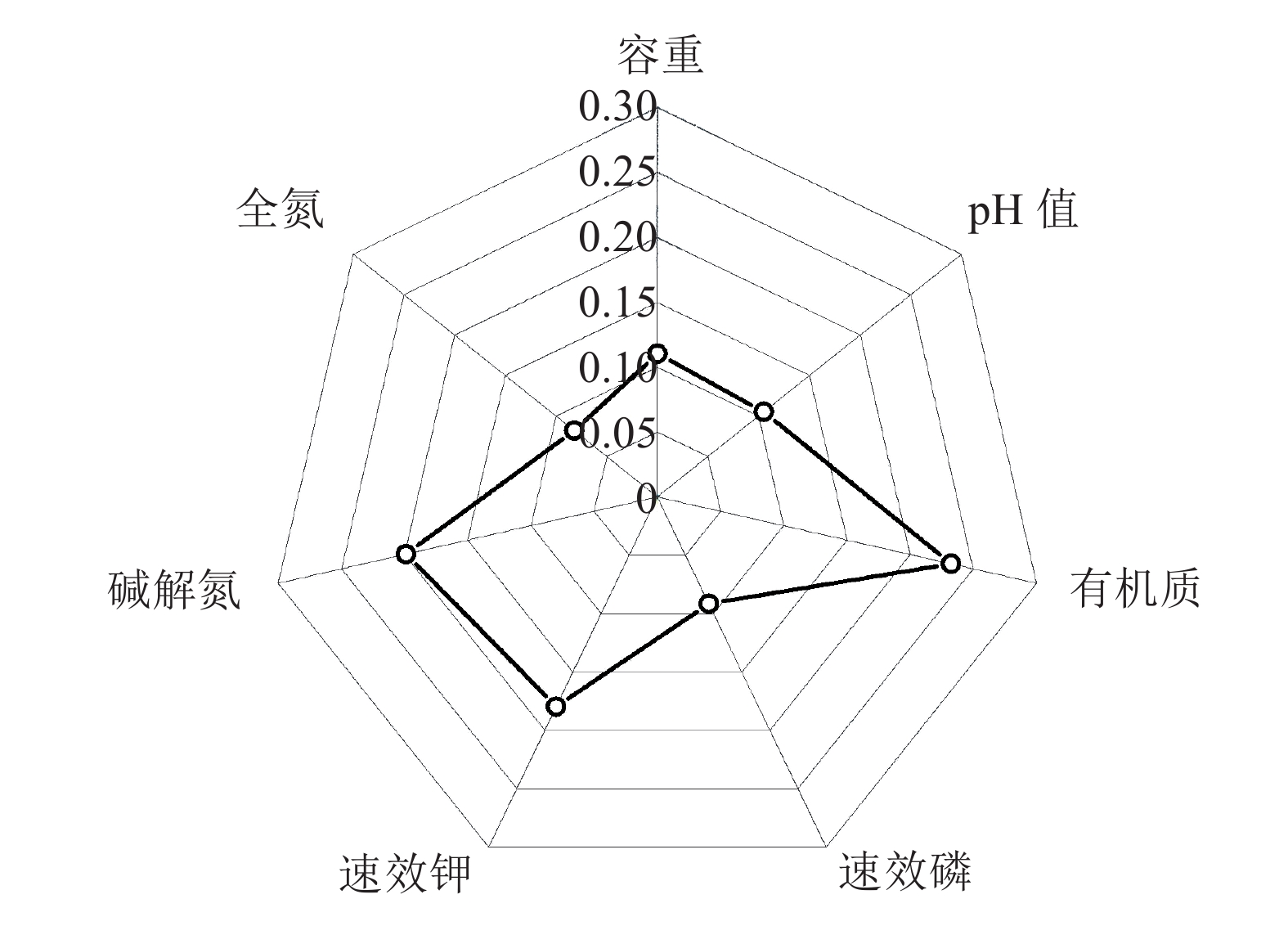 图 1 各项土壤指标隶属度函数值雷达图 Figure 1 Radar plot of membership function values of soil indicators |