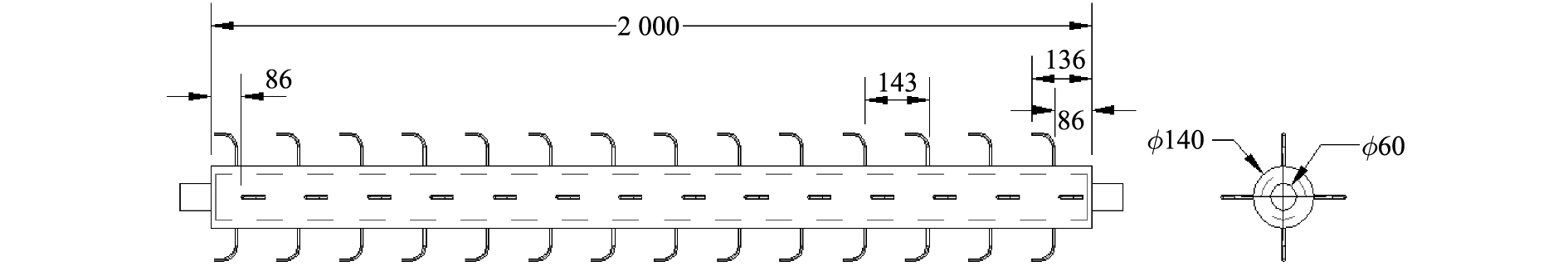 图 3 扶辊示意图(单位:mm) Figure 3 Schematic diagram of lifting roller(unit: mm) |