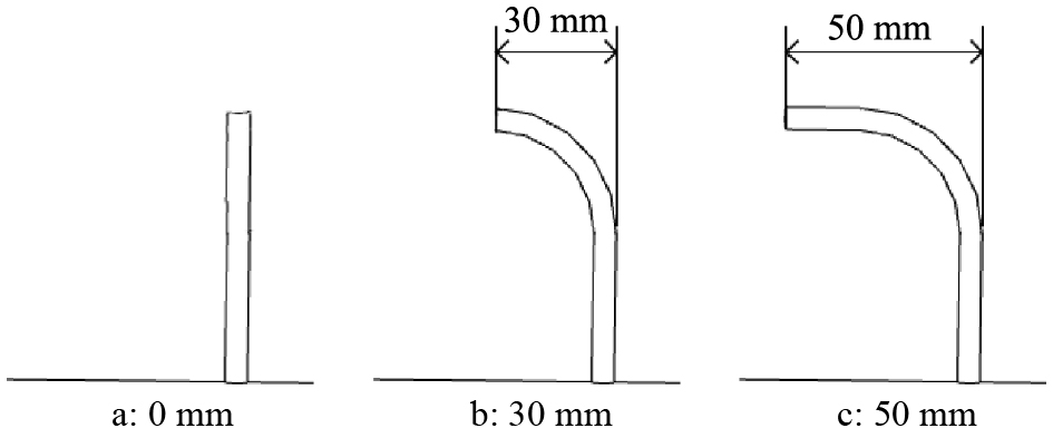 图 6 不同扶指宽度(0、30和50 mm)扶指形状示意图 Figure 6 Schematic diagrams of lifting fingers with various width(0, 30 and 50 mm) |
