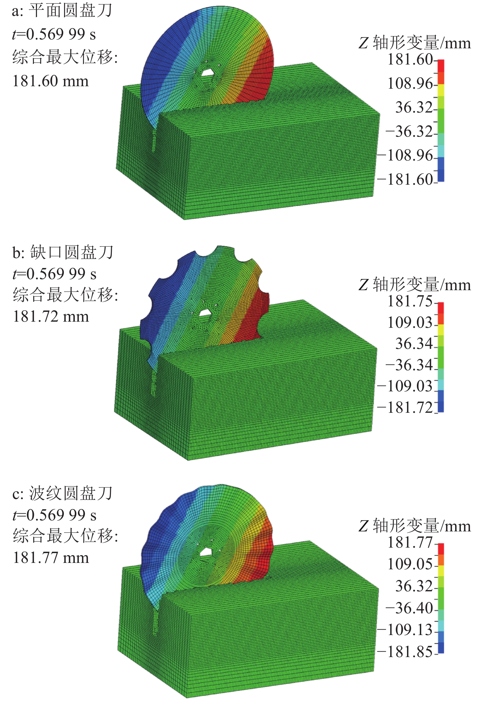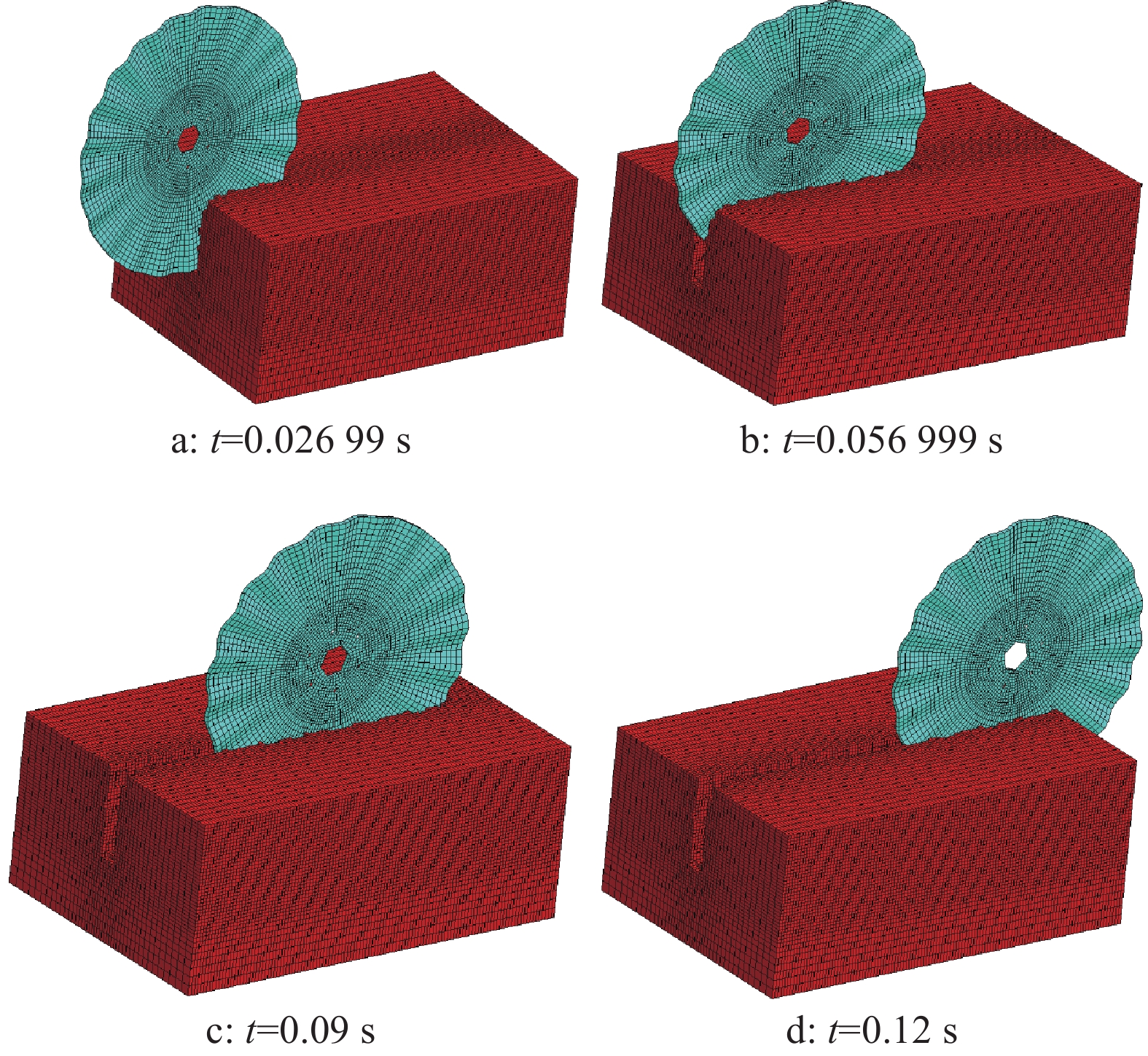 图 6 波纹圆盘刀切割土壤仿真结果 Figure 6 Simulation result of soil cutting with corrugated disc knife |