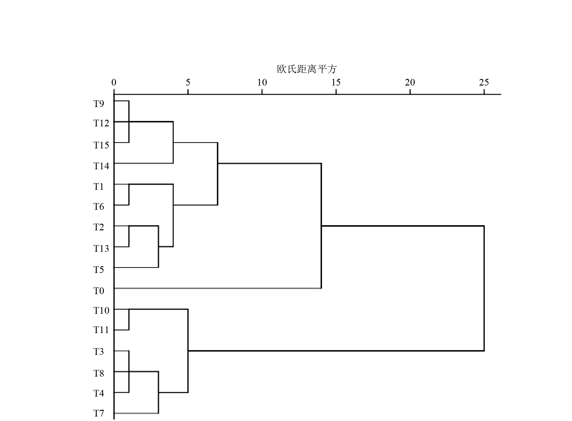 图 6 16个处理组的聚类分析树状图 Figure 6 The clustering tree of 16 treatment groups |