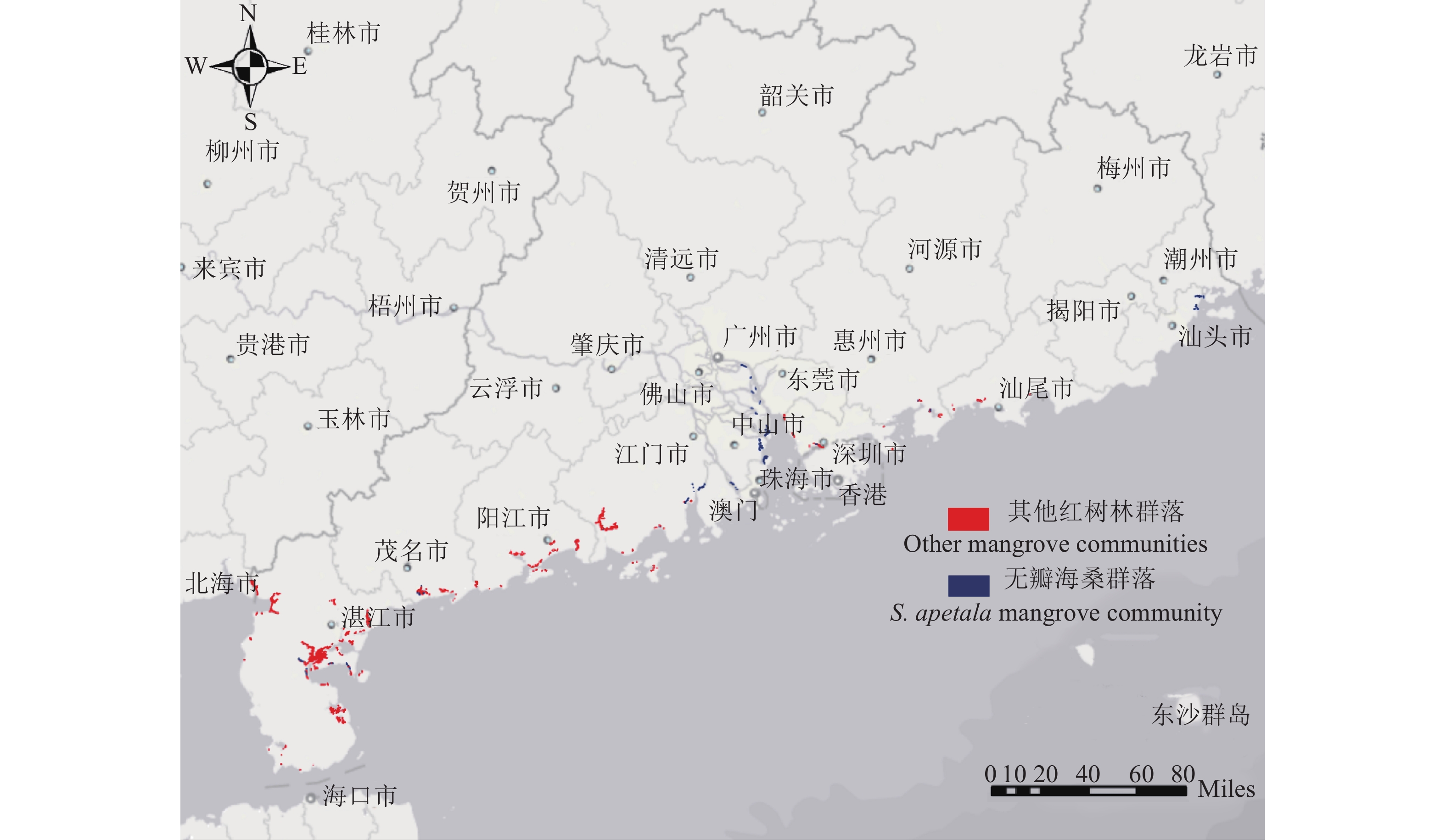 图 1 广东省无瓣海桑分布图 Fig. 1 Distribution of Sonneratia apetala in Guangdong Province |