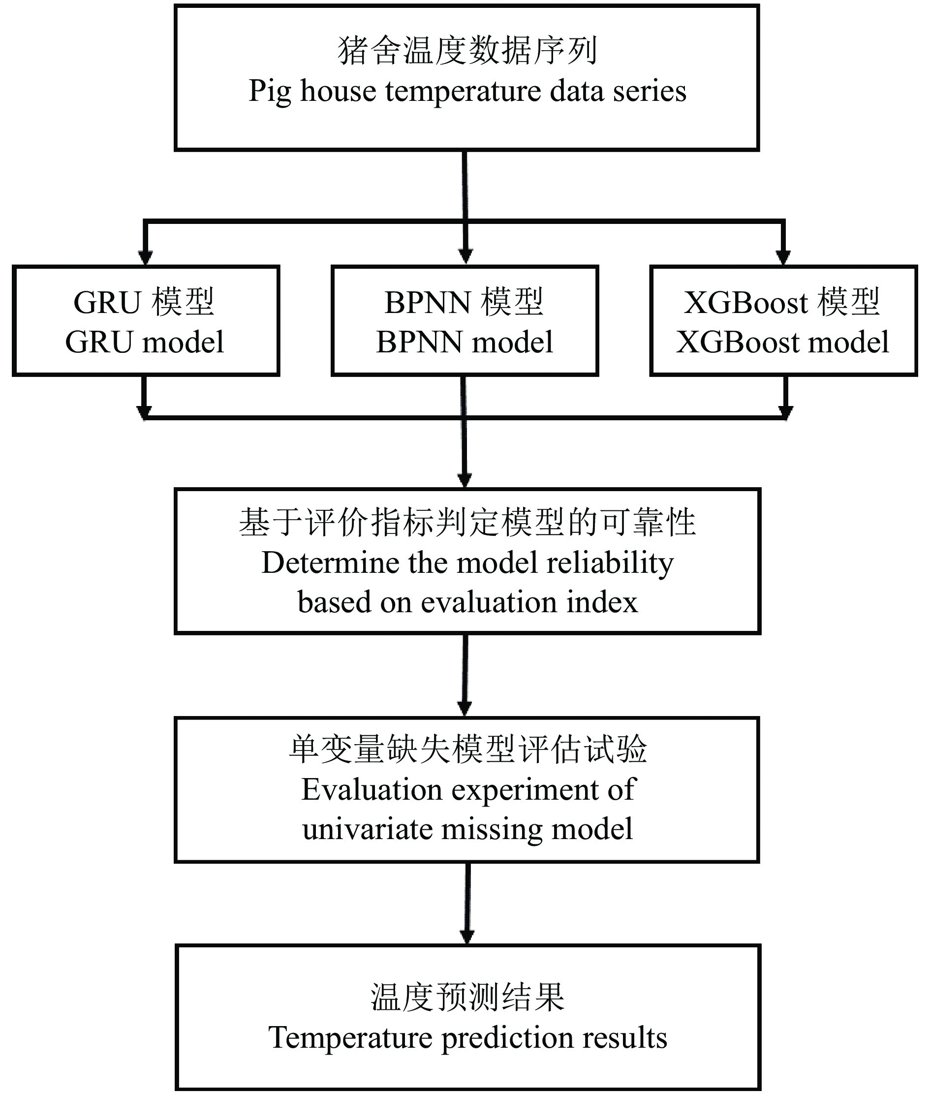 猪舍温度数据序列受猪舍内其他环境因子影响,例如相对湿度、空间位置、氧气浓度、二氧化碳浓度等。本研究在同一时刻,探讨环境因子缺失对猪舍温度数据预测的影响,构建基于时间序列与多元模型的猪舍温度预测模型(图2)。