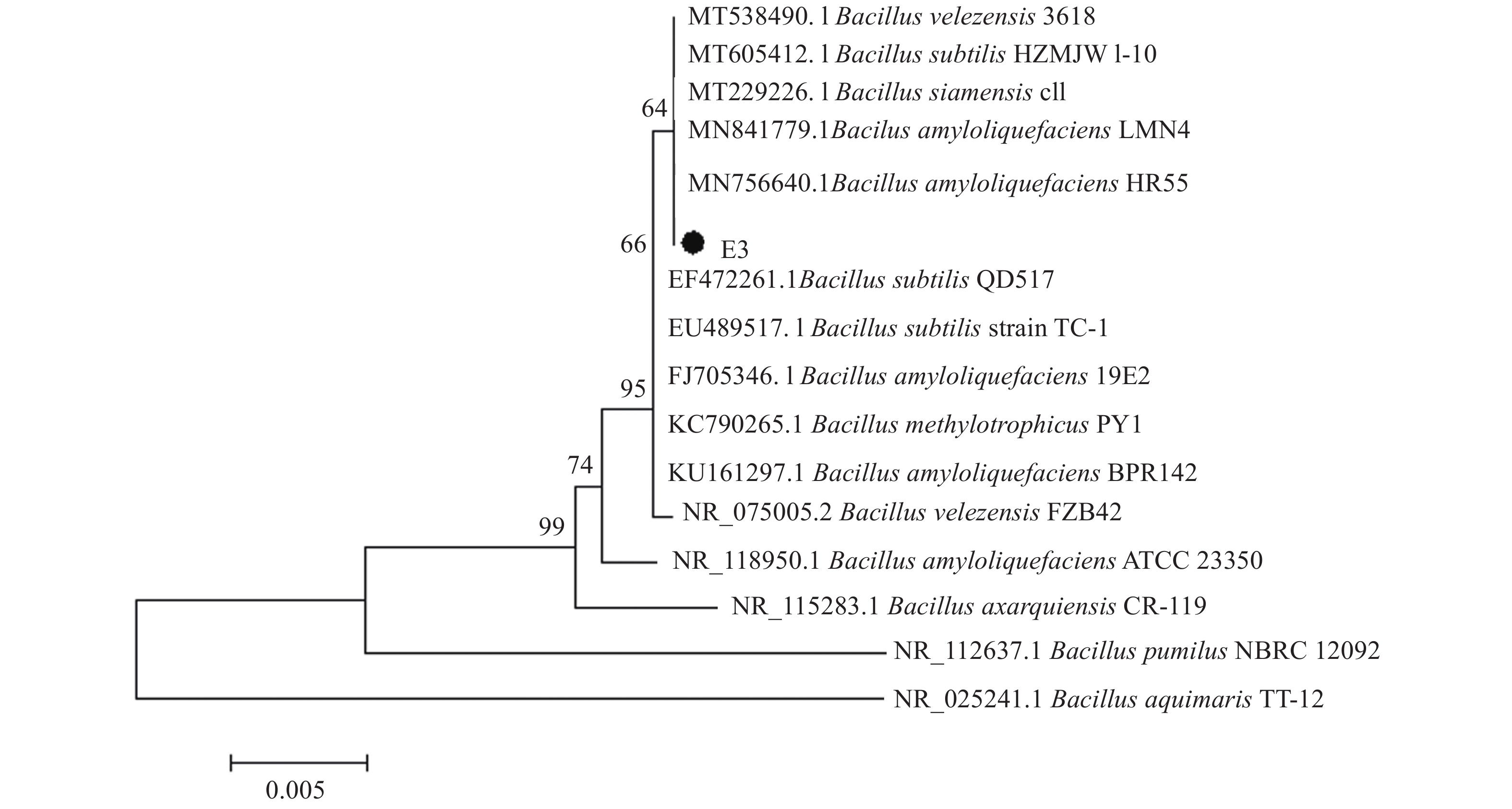 图 2 依据16S rDNA序列构建的E3菌株系统发育树 Fig. 2 The phylogenetic tree of E3 strain based on 16S rDNA sequence |