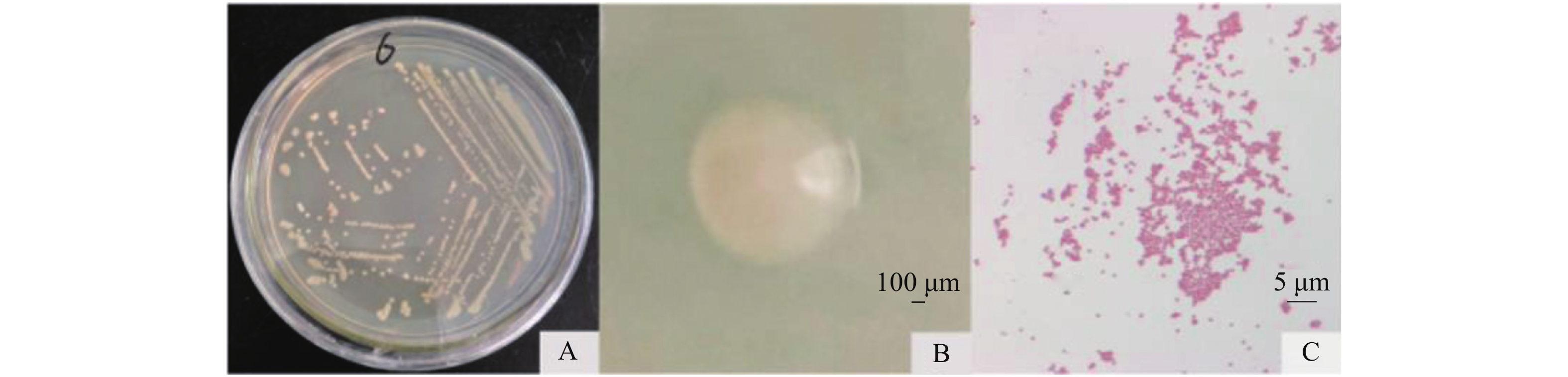 图 4 菌株SL-6的常规形态学特征 Fig. 4 Conventional morphological characteristics of strain SL-6 A:SL-6 LB培养基菌落形态;B:SL-6 LB培养基单菌落形态;C:SL-6革兰氏染色图 A: SL-6 colony morphology on LB medium; B: SL-6 single colony morphology on LB medium; C: SL-6 gram staining |