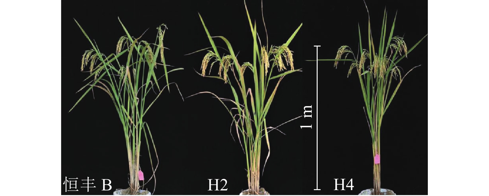 图 6 ‘恒丰B’及其后代改良株系H2和H4株型对比 Fig. 6 Plant types of ‘Hengfeng B’ and its genetically improved lines, H2 and H4 |