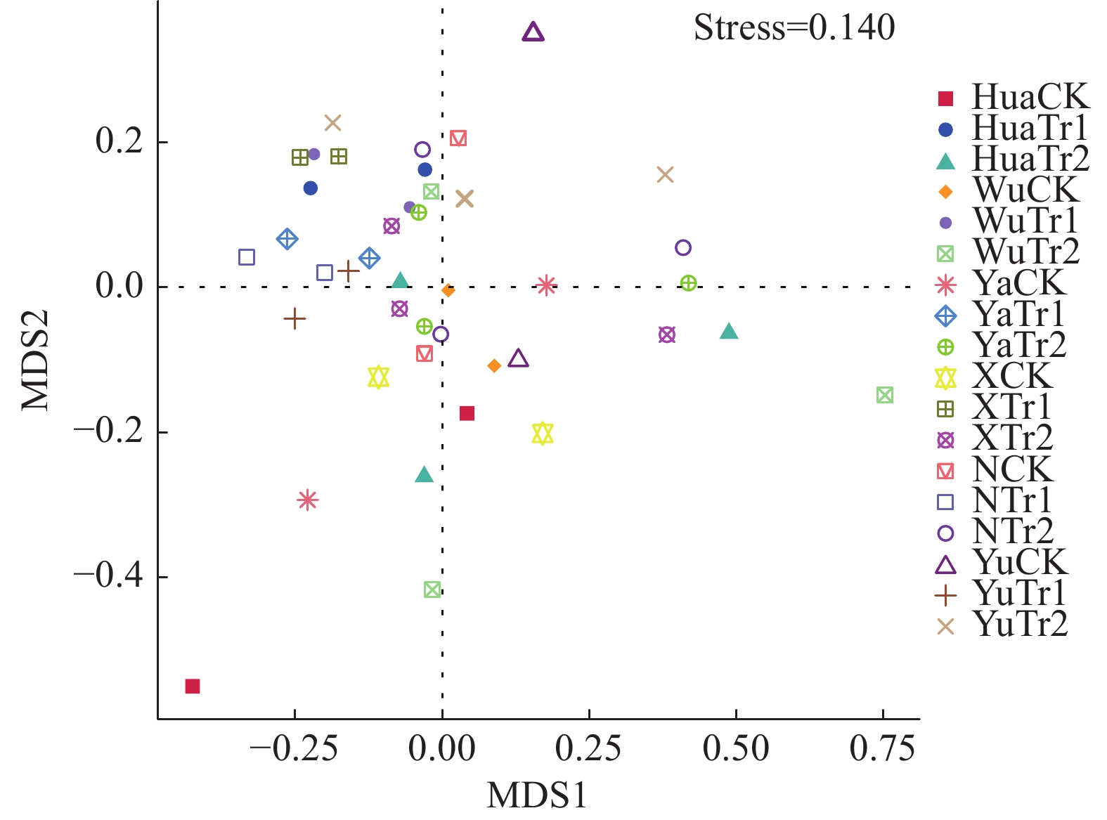 图 4 土壤细菌群落结构的非度量多维尺度(NMDS)分析 Fig. 4 Non-metric multi-dimensional scaling (NMDS) analysis of soil bacterial community structure |