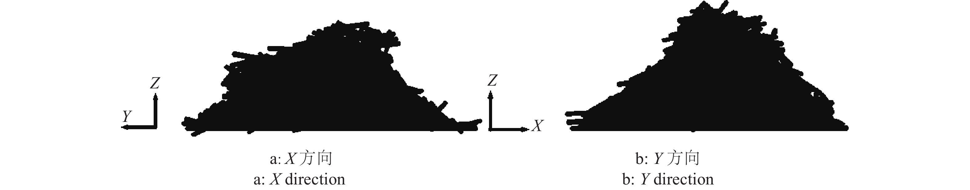 由于蔗段堆X、Y方向两侧倾角存在一定差异,因此测量视图两侧的倾角,取其平均值为仿真堆积角,如图6所示。