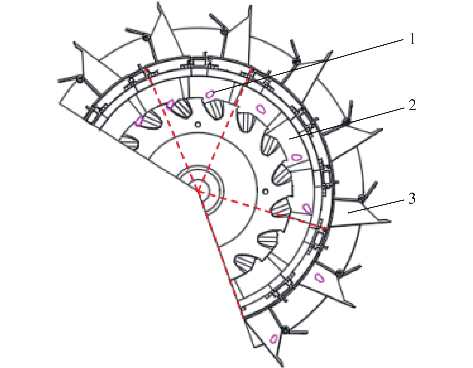 图 3 第1、第2次投种过程示意图 Fig. 3 Diagrams of the first and second seeding processes 1:棉种;2:分种腔;3:鸭嘴 1: Cotton seed; 2: Seed splitting chamber; 3: Duckbill |